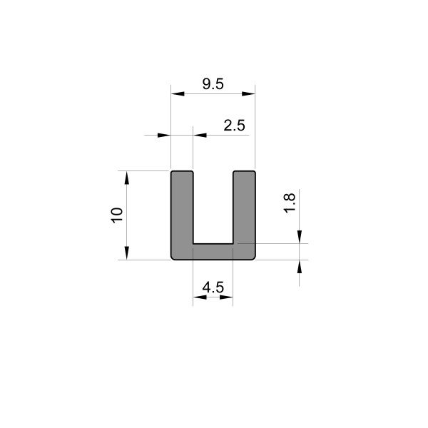 This square rubber U channel can be fitted onto a 4.5mm thick panel edge. It is 10mm high by 9.5mm wide and has a 1.8mm thick wall. It can be used for a wide range of sealing and edge protection applications on your caravan or motorhome.